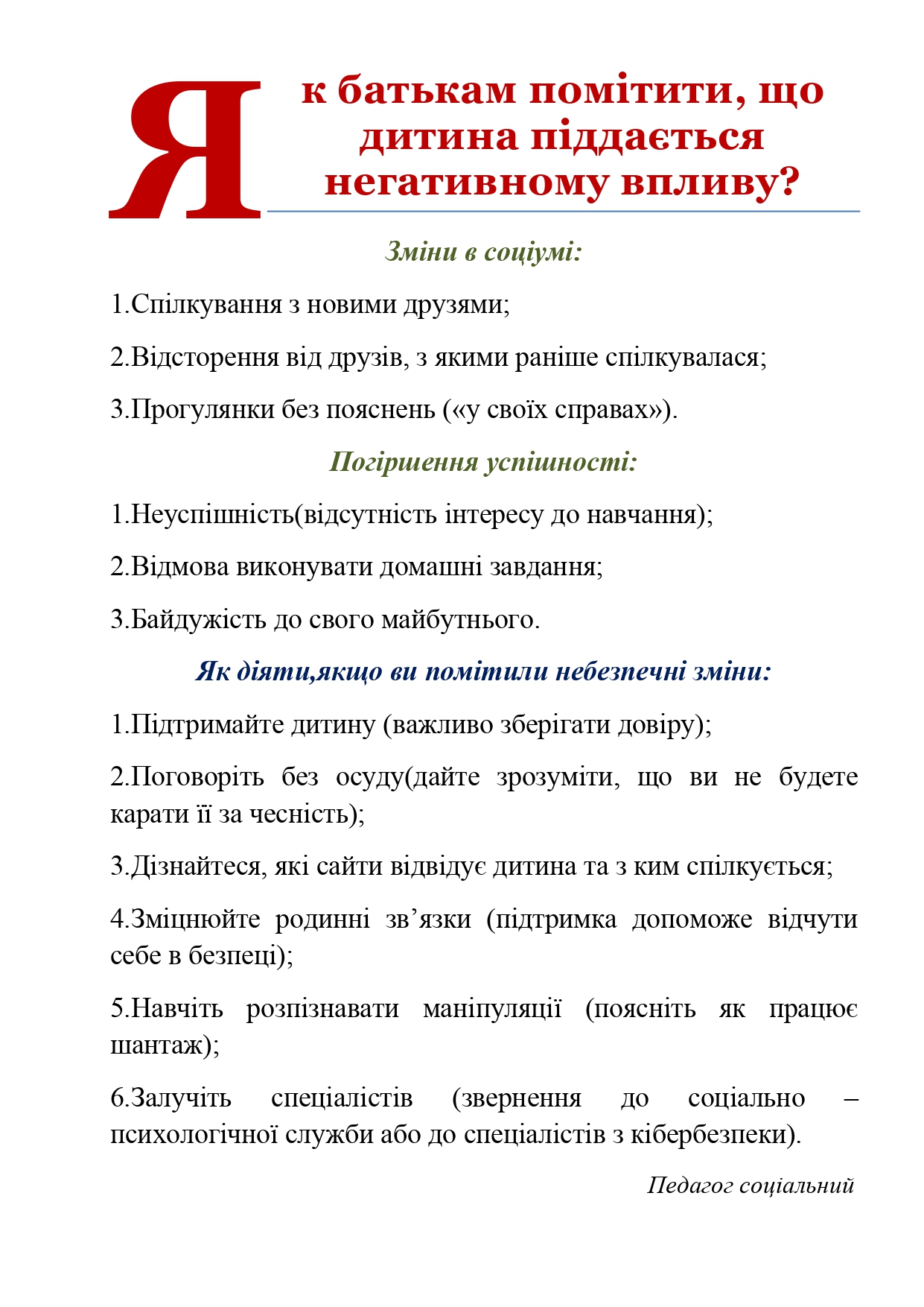 "Як батькам помітити, що дитина піддається негативному впливу"