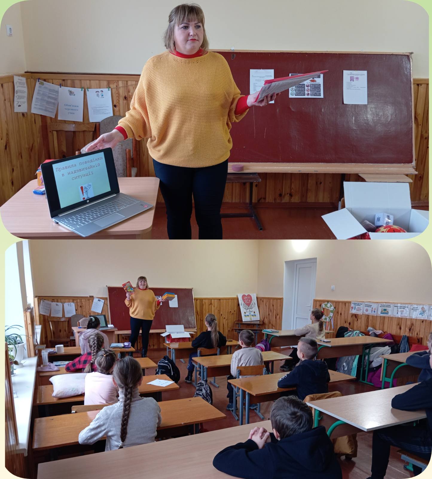 .jpgЗдобувачі освіти 2-го, 6-го та 8-го класів ознайомилися з правилами безпечної поведінки взимку, а саме: 1.безпечне пересування дорогами в умовах ожеледиці;2.правила поводження на льоду;3.безпечне катання на санчатах і ковзанах;4.небезпека бурульок та снігу з дахів будинків;5.правила безпеки вдома (електробезпека, газ, пожежна безпека);6.безпека під час новорічних свят;7.дії у разі надзвичайних ситуацій;8.правила безпеки під час воєнного стану;9.номери екстрених служб.