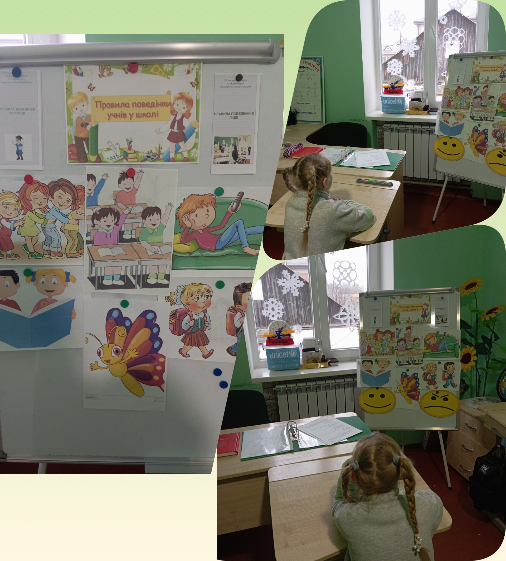 .jpgЗдобувачі освіти менших класів ознайомилися з правилами поведінки,які включають етикет (вітатися,не перебивати), відповідальність та повагу до інших (не ображати, не шуміти тощо) - усе це формує дисципліновану та адаптовану особистість.